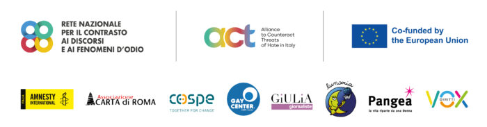 Cofinanziato dall’Unione europea, il progetto nasce da una rete consolidata di realtà attive nel contrasto ai fenomeni d’odio in Italia che compone la Rete Nazionale contro i discorsi e i fenomeni d’odio. L’ente capofila, coordinatore e responsabile globale del progetto, è COSPE ETS– Cooperazione per lo Sviluppo dei Paesi Emergenti. Gli altri partner sono Fondazione PANGEA ETS, LUNARIA Associazione di Promozione Sociale, Associazione Carta di Roma, AMNESTY International Sezione Italiana – ODV, Gi.U.Li.A. Giornaliste Unite Libere Autonome, VOX – Osservatorio Italiano sui Diritti, GAY CENTER / GAY HELP LINE.